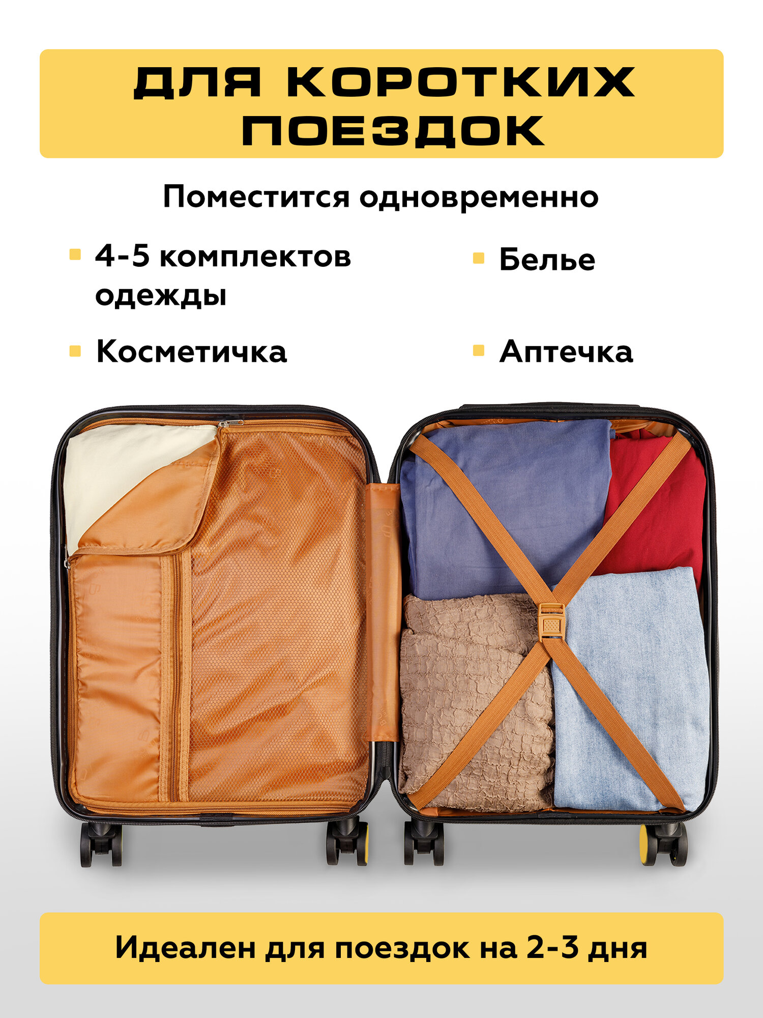 СохранитьЧемодан на колесах ручная кладь желтый Bonle, премиум ABS-пластик, размер S, 55 см, 33 л, дорожный, маленький, детский интересное: