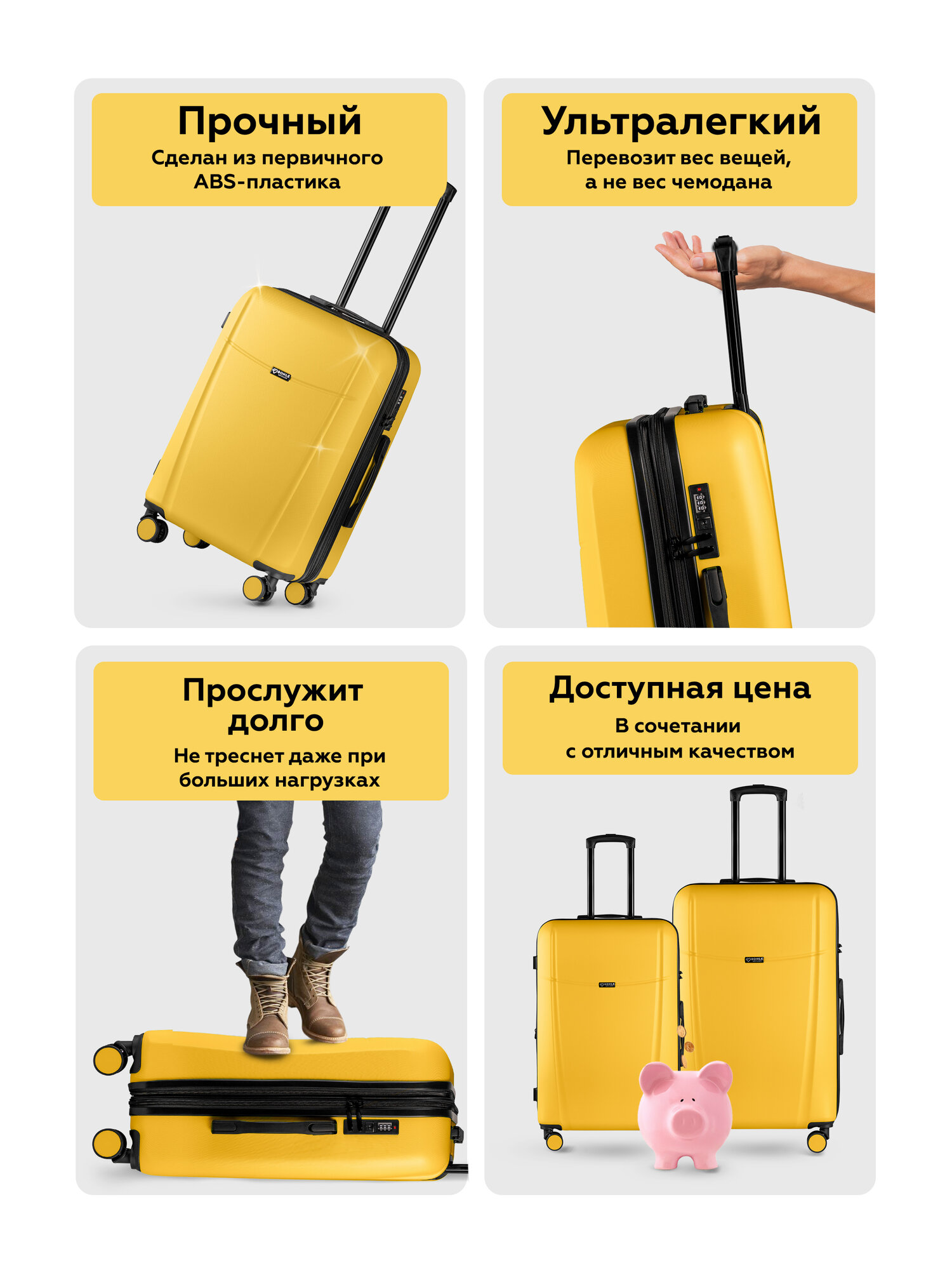 Комплект чемоданов на колесах желтый 2 шт размер S, L дорожный маленький ручная кладь и большой