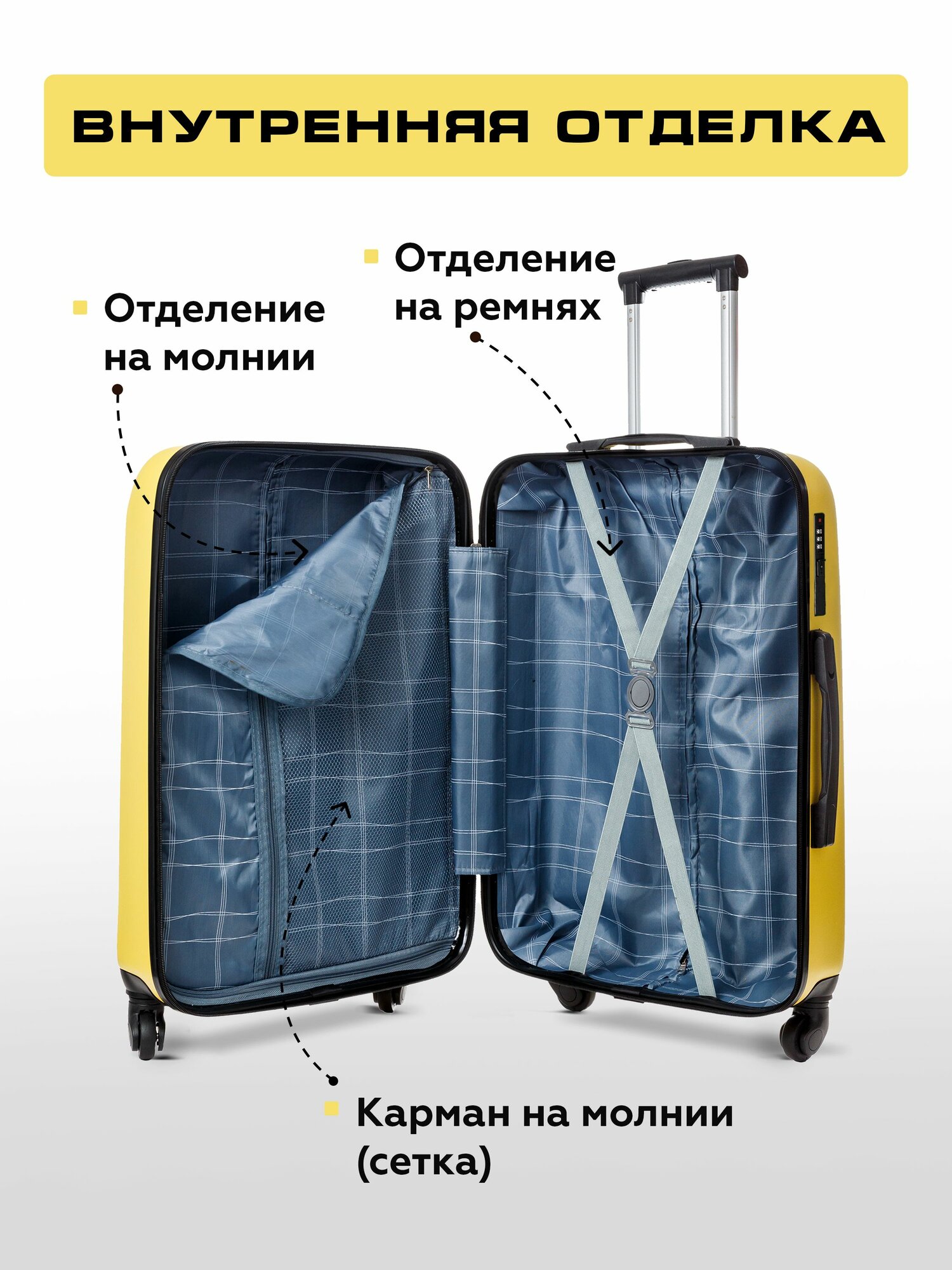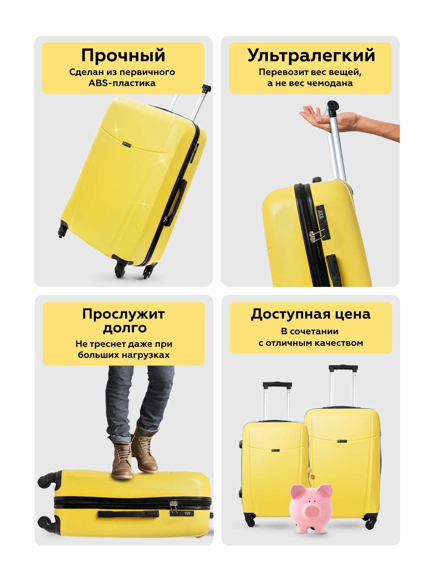 СохранитьЧемодан на колесах M желтый Bonle, премиум ABS-пластик 66,5 см, 62 л, средний дорожный интересное: