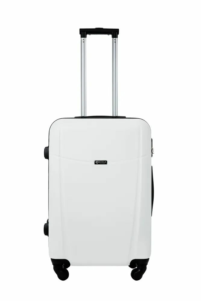 Чемодан на колесах M белый Bonle, премиум ABS-пластик 65 см, 72 л, средний дорожный