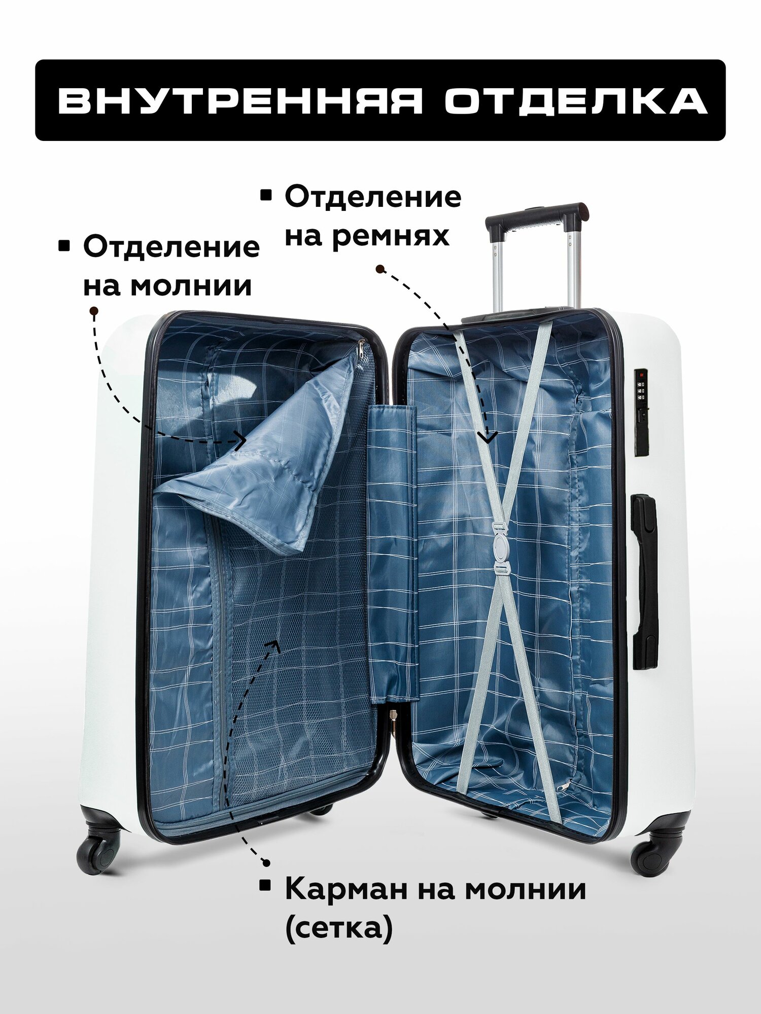 Чемодан на колесах L белый Bonle, премиум ABS-пластик 75,5 см, 101 л, большой дорожный