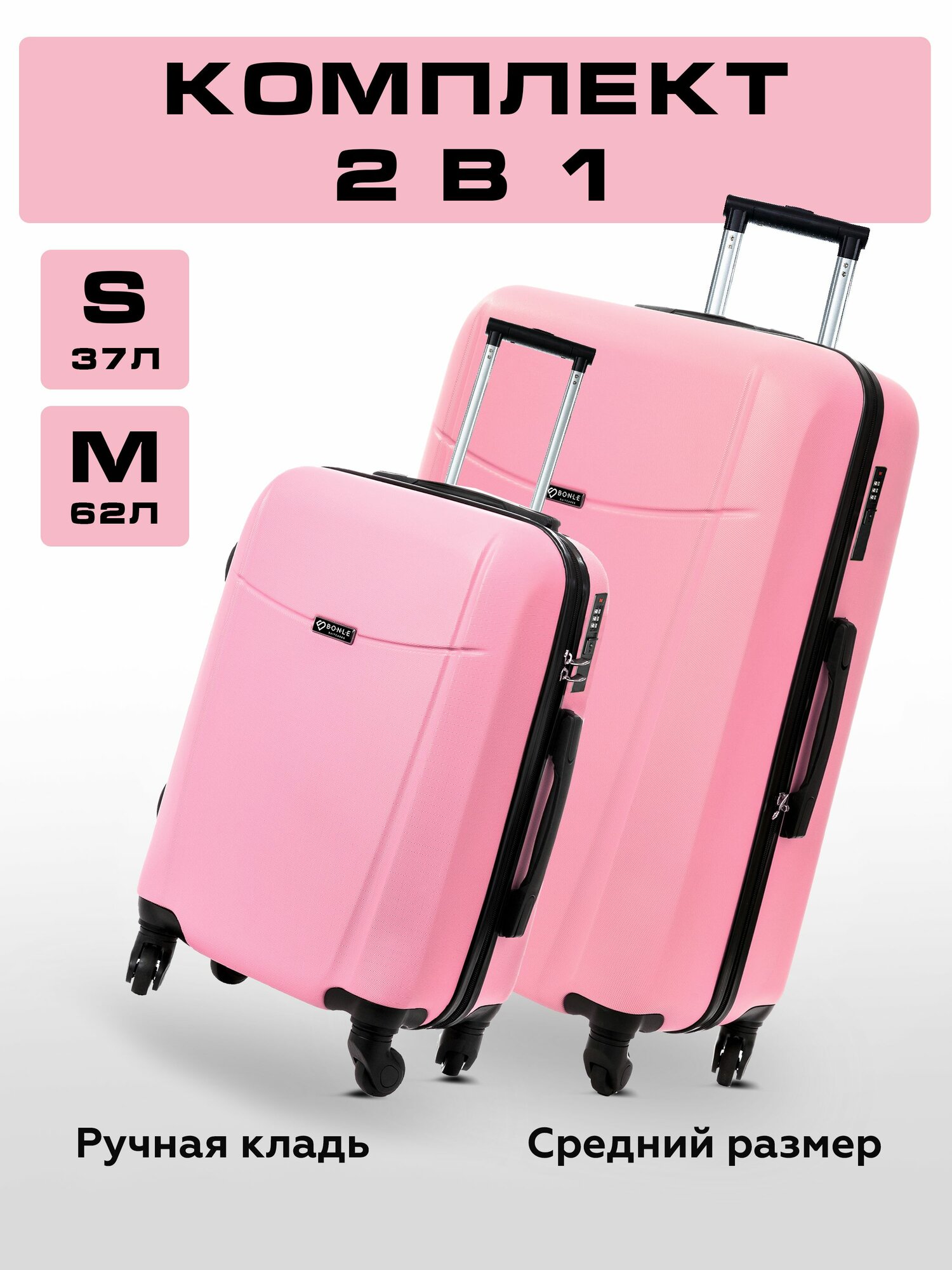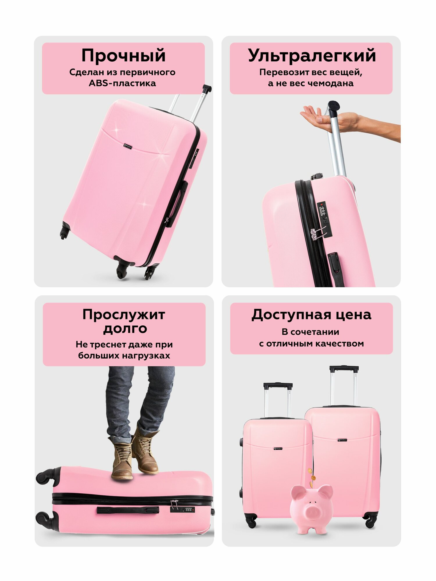 Комплект чемоданов на колесах нежно-розовый 2 шт размер S, L дорожный маленький ручная кладь и большой
