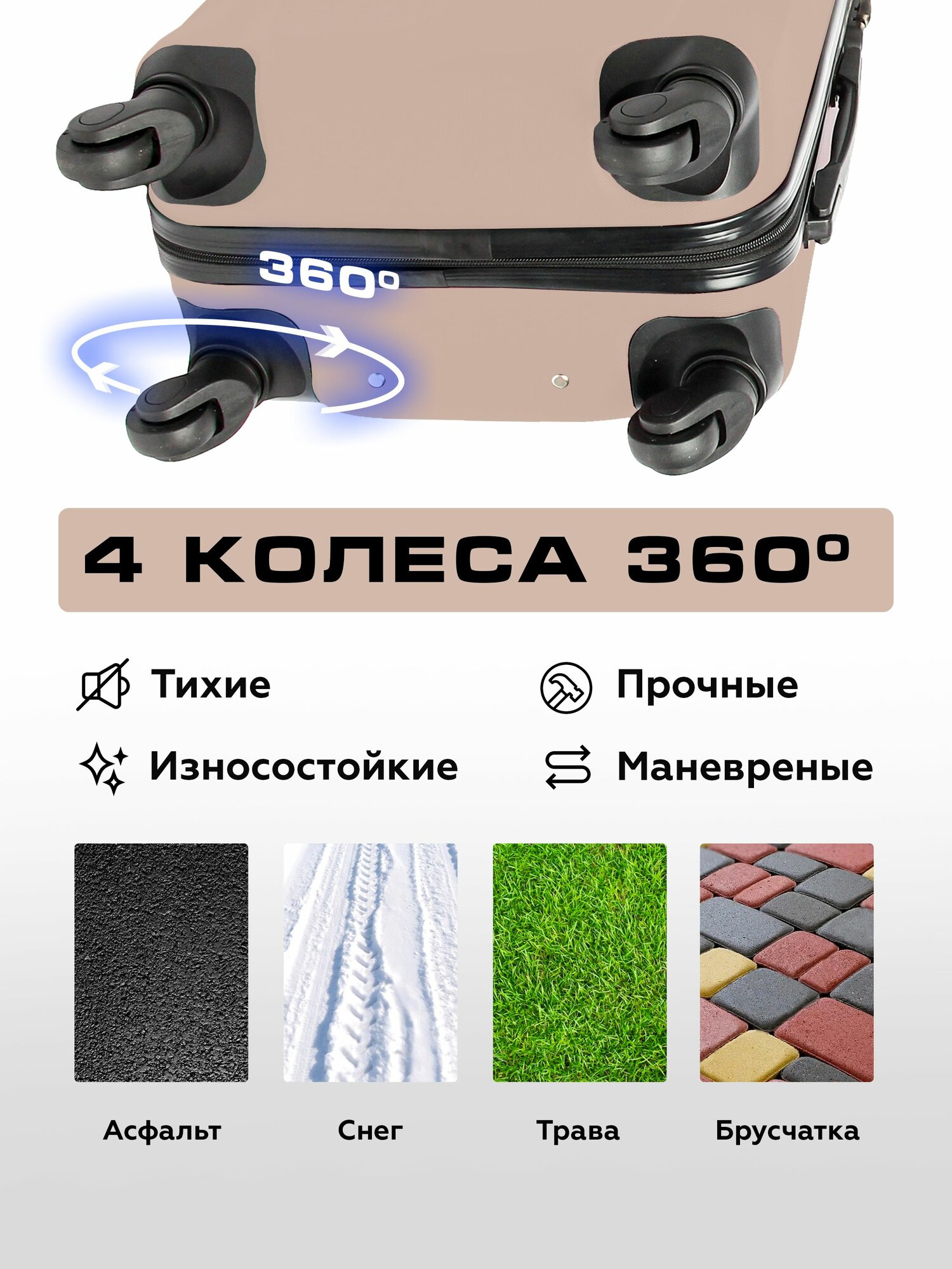 Чемодан на колесах M светло-коричневый Bonle, премиум ABS-пластик 65 см, 62 л, средний дорожный