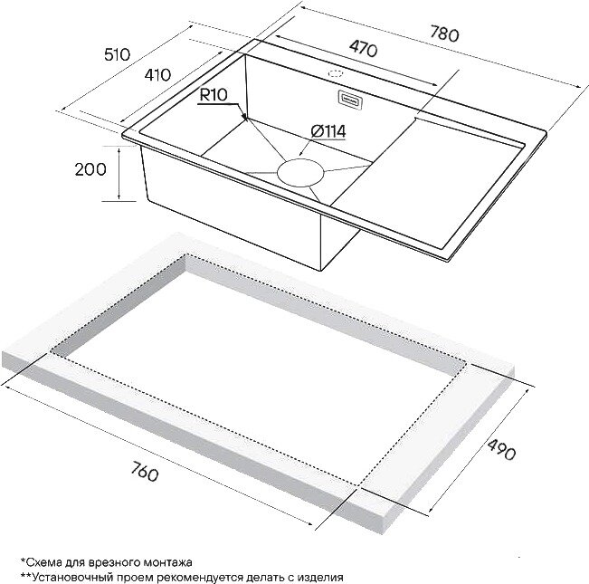 Врезная кухонная мойка LEX Maury 510