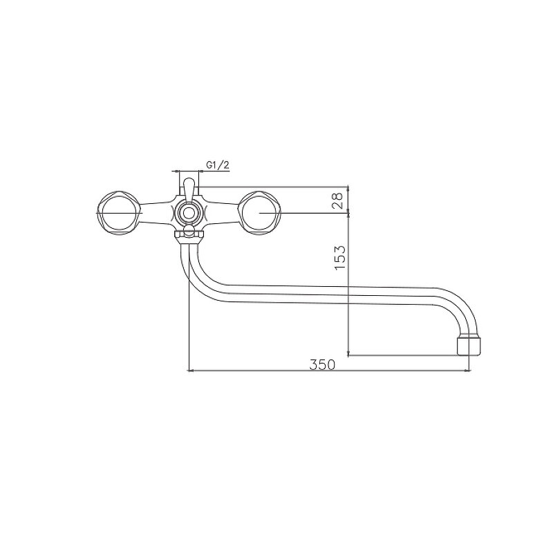 Смеситель для ванны и умывальника 1/2 кер CN2308 CRON трубчатый излив 350 мм, хром