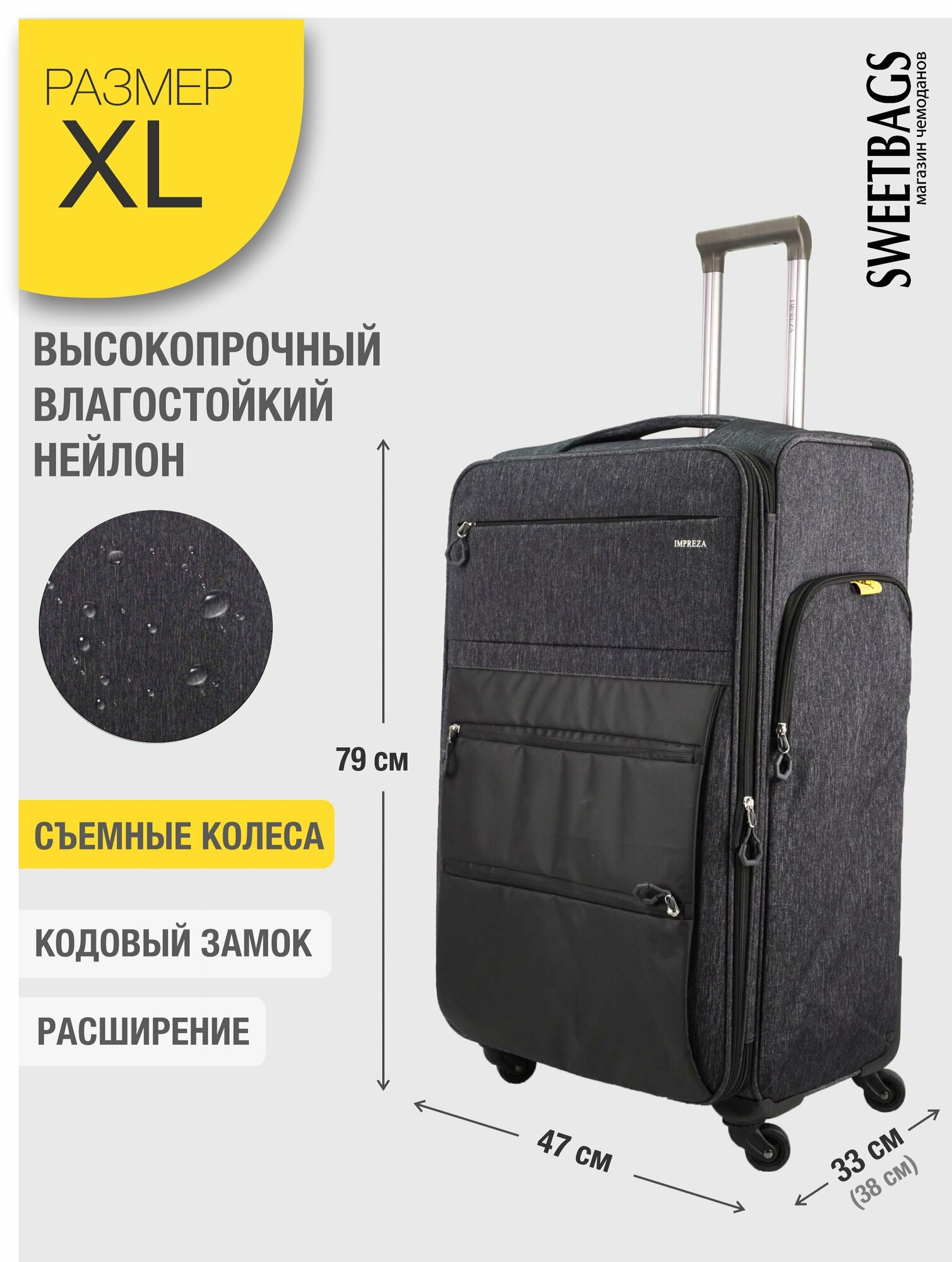 Чемодан Sweetbags текстильный большой с 4 съемными колесами и расширением (waterproof) темно-серый XL