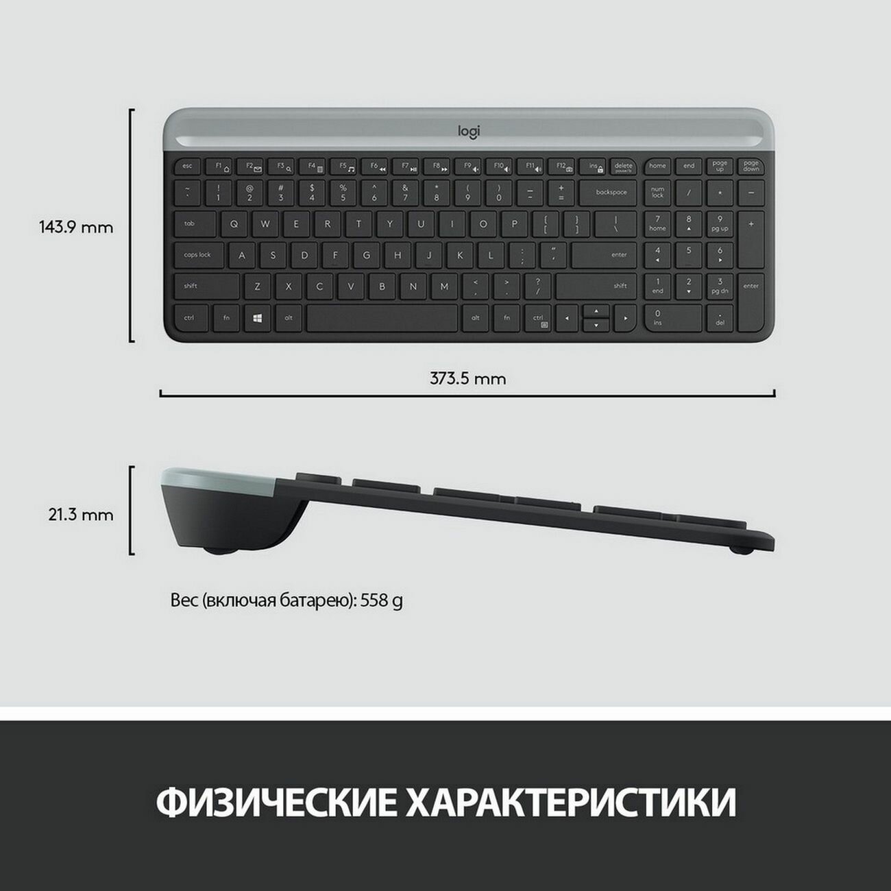 Комплект клавиатура+мышь Logitech MK470 Slim Combo Graphite (русская раскладка) интересное:
