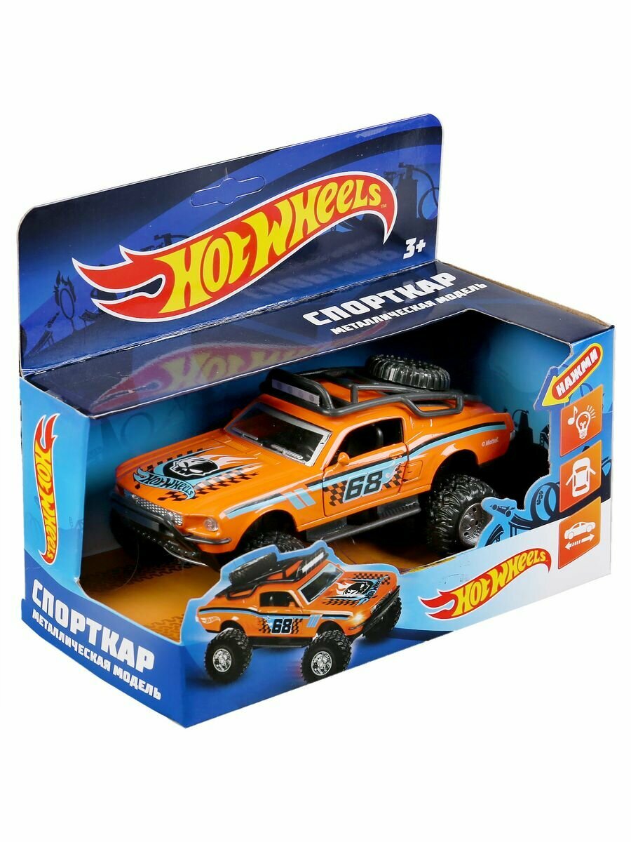 Модель Спорткар Hot Wheels 12,5см Технопарк оранжевый металл инерция свет+звук