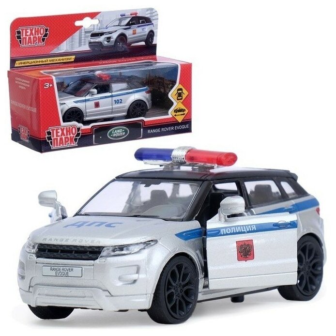 Машина инерционная Технопарк металлическая, Land Rover Range Rover Evoque Полиция 12, 5 см, открываются двери (EVOQUE-P)