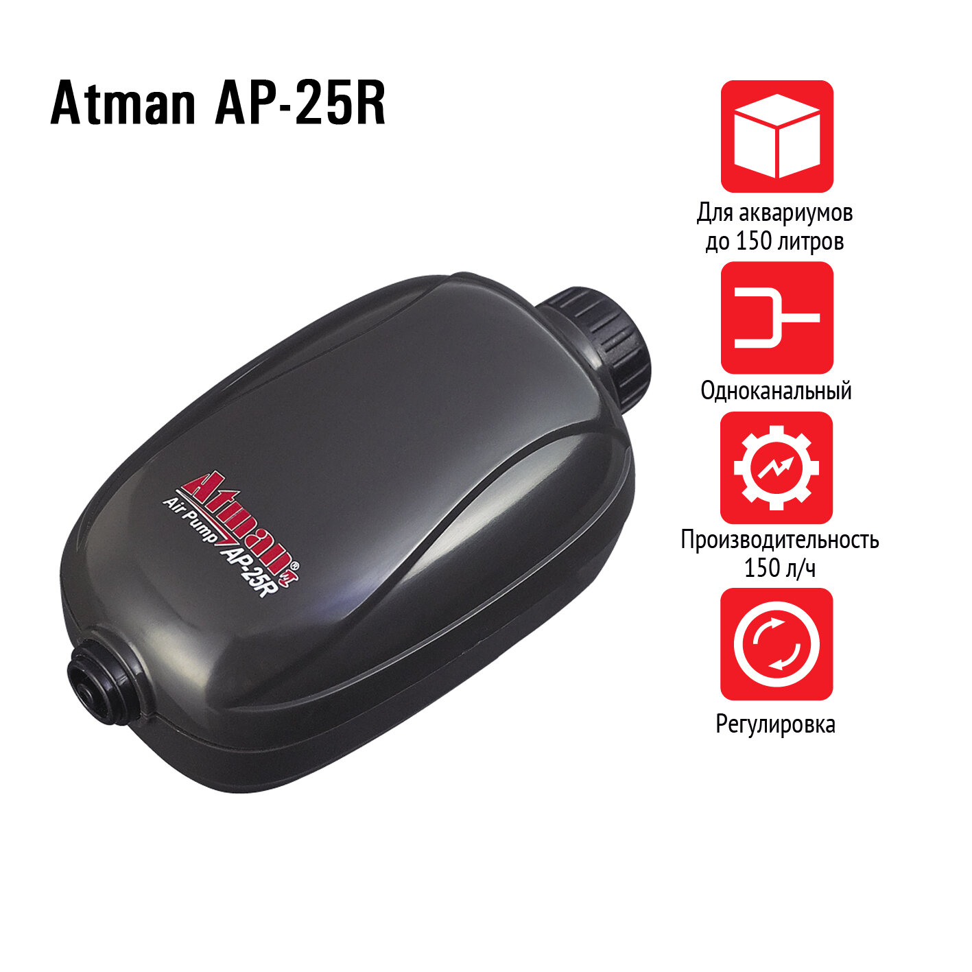 Компрессор Atman AP-25R одноканальный с регулятором 150 л/ч (1 шт)