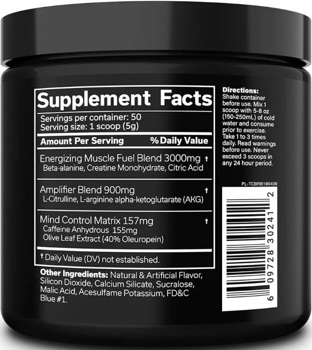 | Дополнительная информация | рекомендации по применению: по 1-3 порции (1-3 мерных колпачка) за 30-45 мин перед тренировкой. Каждая порция смешивается со 150-250 мл воды. Встряхните банку перед тем, как открывать ее. Не принимайте более 3 мерных колпачков в течении 24-х часов |