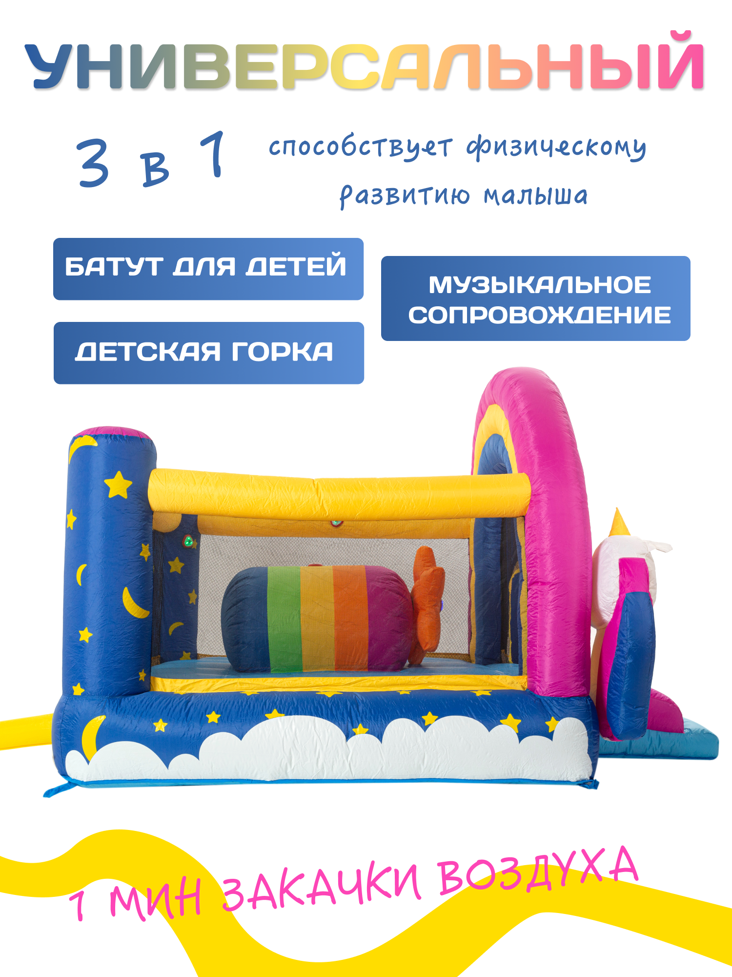 Надувной батут с горкой "Сказочный единорог" интересное: