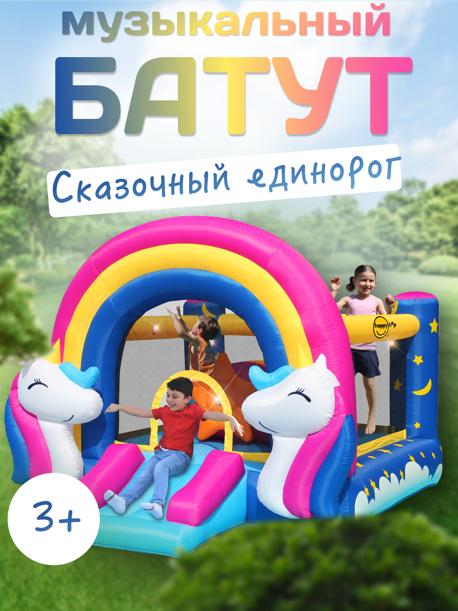 Надувной батут Сказочный единорог Happy Hop 8004