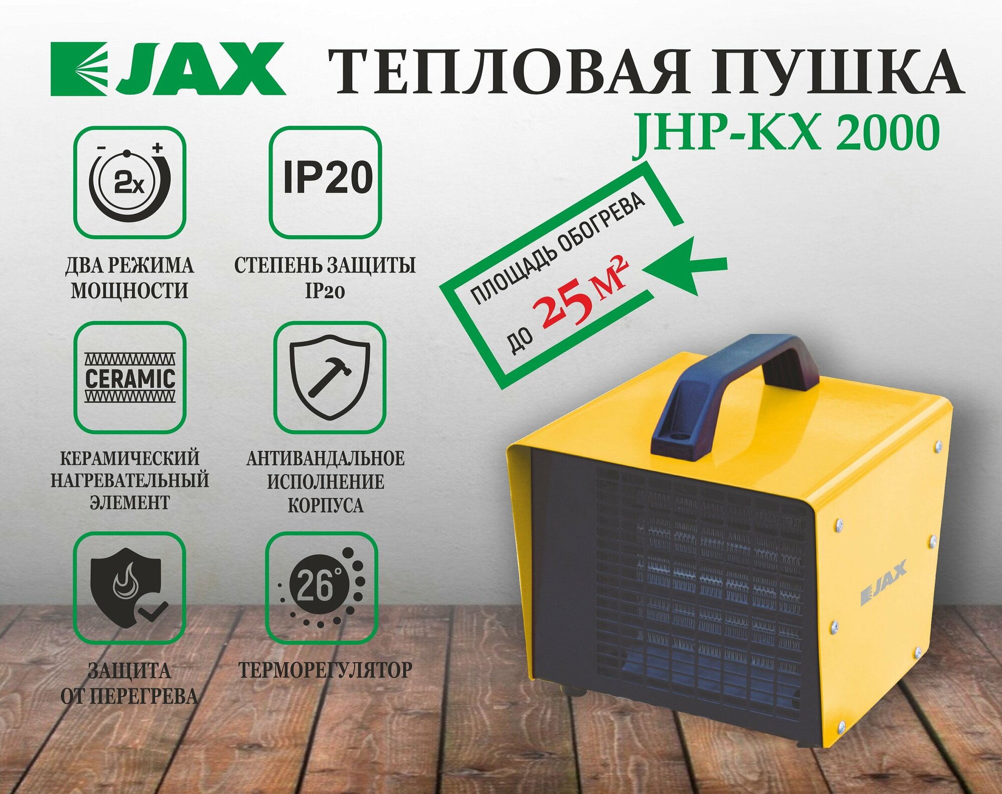 Электрическая тепловая пушка Jax JHP-KX 2000 без горелки (2 кВт)
