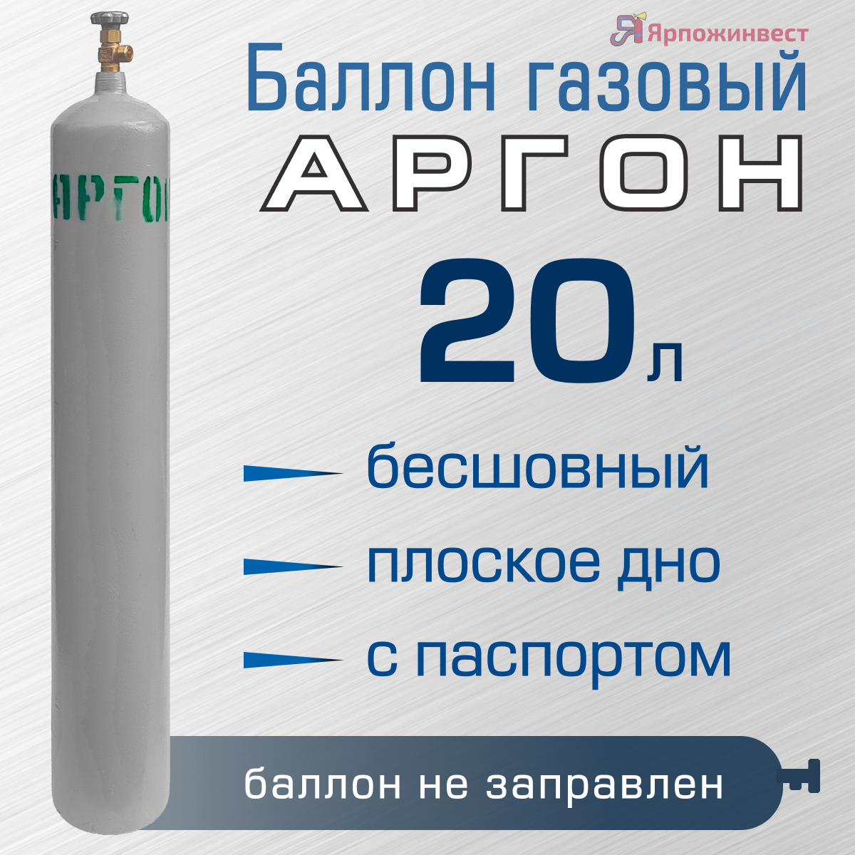 Баллон аргон 20л, Ярпожинвест, бесшовный/ Пустой без газа