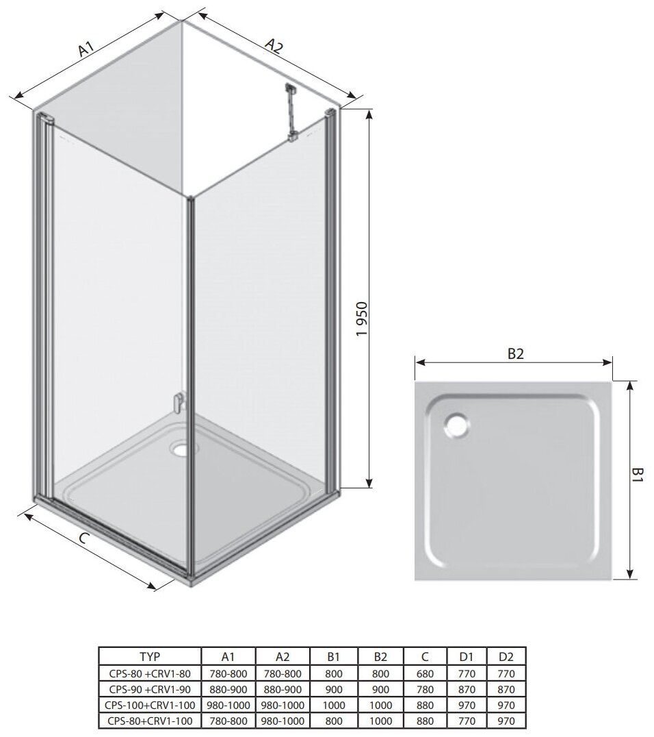 Душевая перегородка Ravak Chrome CPS 90 сатин + прозрачное