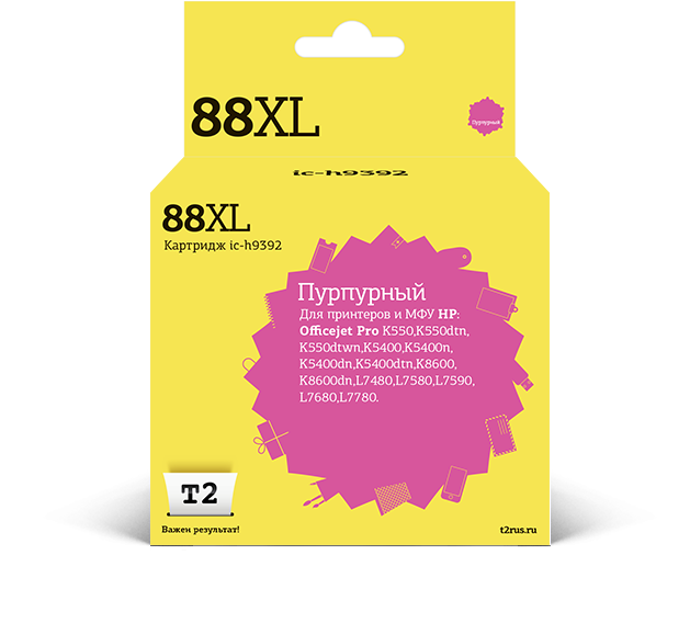 IC-H9392 Картридж T2 № 88XL для HP OfficeJet Pro K550/K550dtn/K550dtwn/K5400/K5400n/K5400dn/K5400dtn/K8600/K8600dn/L7480/L7580/L7590/L7680/L7780, пурп