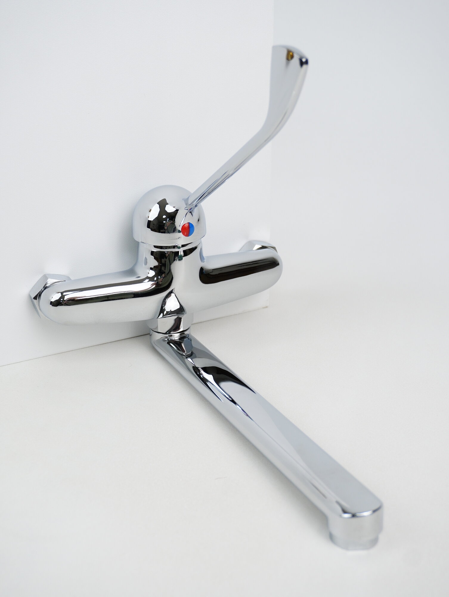 Смеситель для раковины настенный Эверест B46-37 с хирургической ручкой, картридж 35 мм, хром