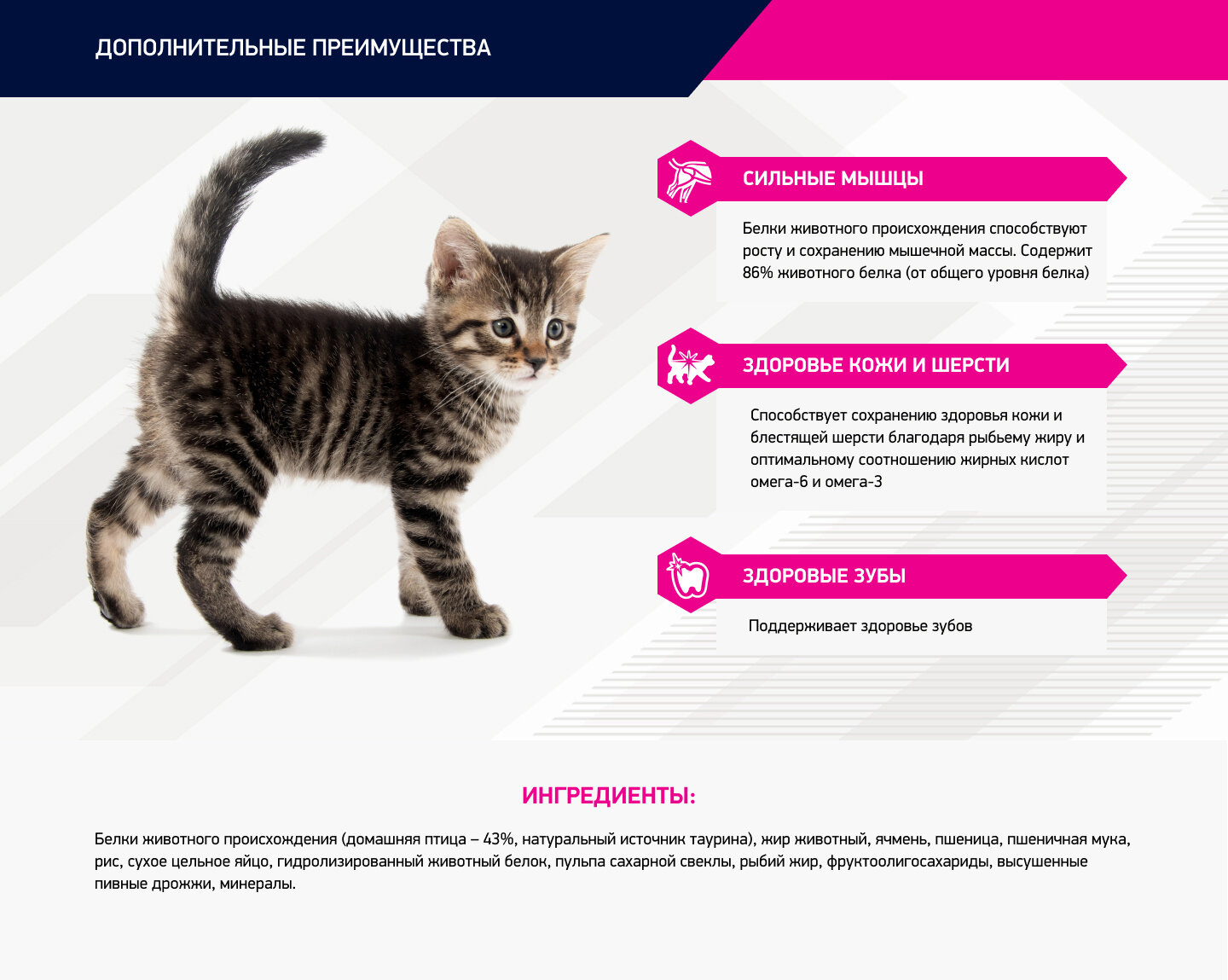 | Особые потребности | для беременных / кормящих кошек / для здоровья кожи и блеска шерсти / профилактика зубного камня |