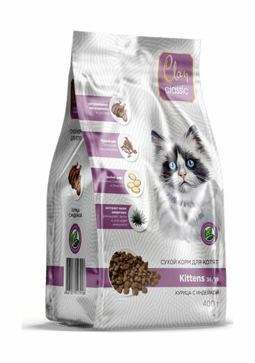 Сухой корм CLAN CLASSIC Kittens 36/19 для котят курица с индейкой 400г