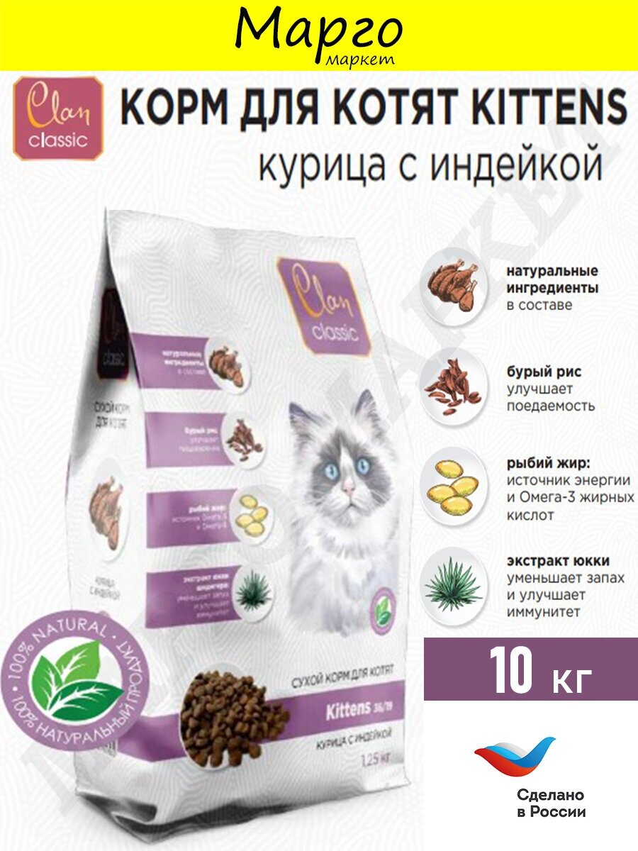 Купить CLAN CLASSIC сухой корм для котят с Курицей и Индейкой 10кг