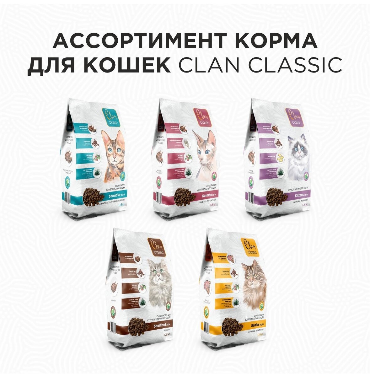 Сухой корм CLAN CLASSIC Kittens 36/19 для котят, курица с индейкой 1,25кг