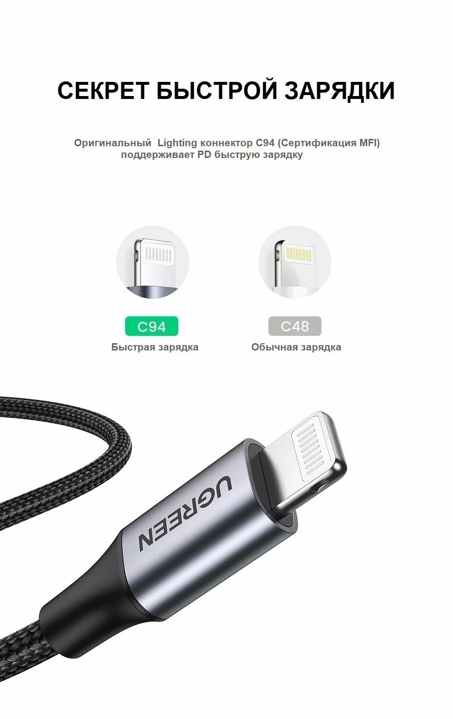 Кабель UGREEN для зарядки и передачи данных USB C 2.0 MFI, 1,5 м (60760), 1 шт. интересное: