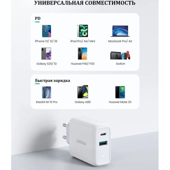 СохранитьСетевое зарядное устройство Ugreen USB-A + USB-C 36 Вт Wall Charger, белый интересное: