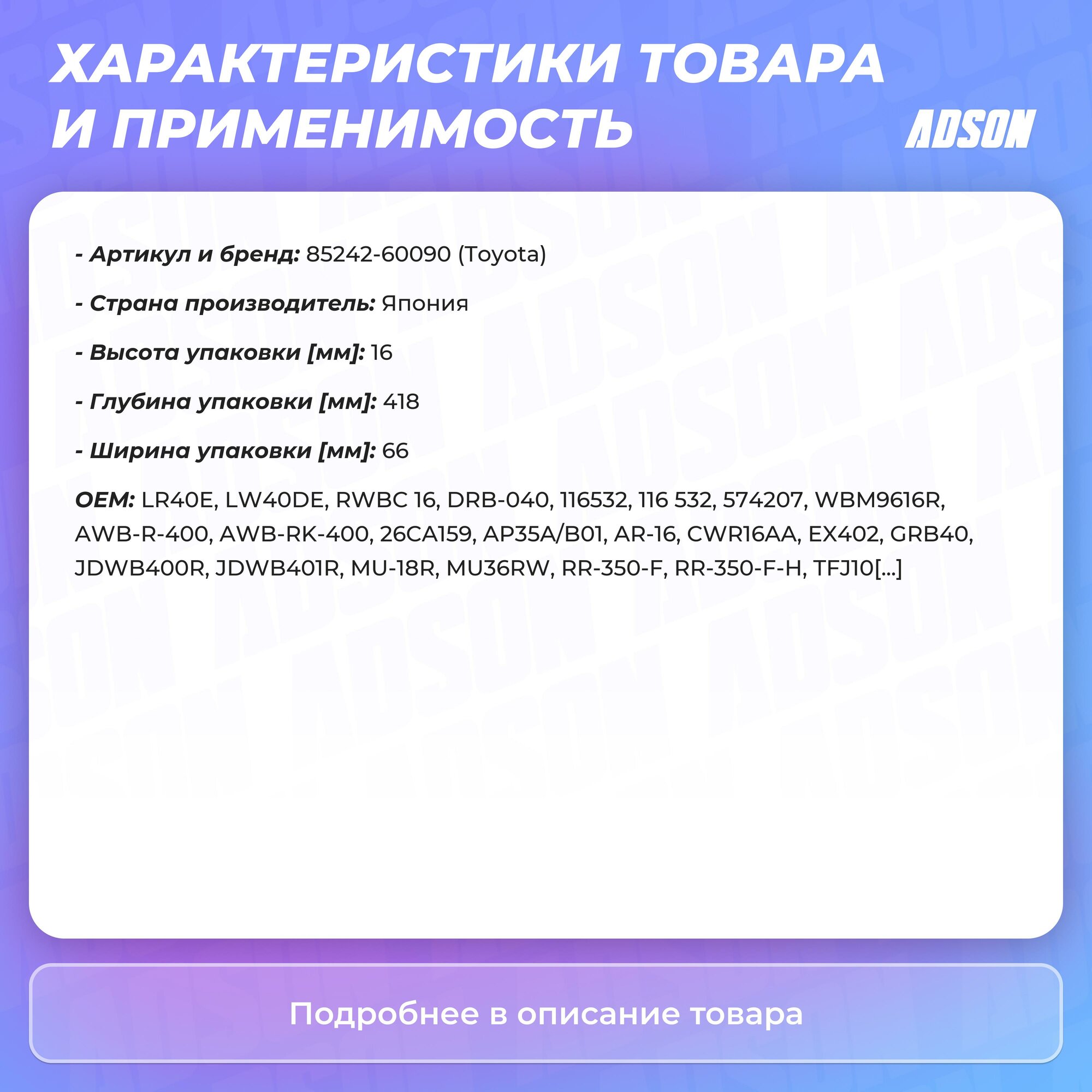 Щетка стеклоочистителя TOYOTA арт. 8524260090