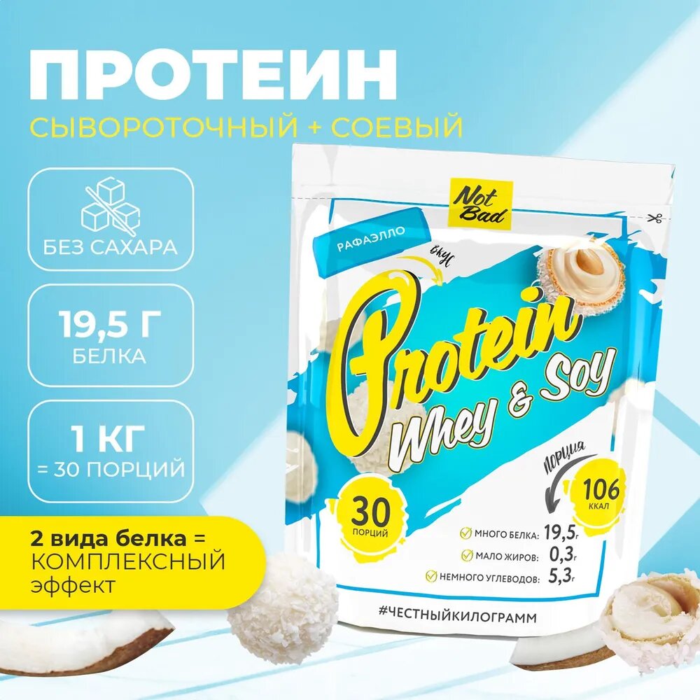 Протеин соевый и сывороточный NOTBAD Whey & Soy Protein, Рафаэлло, 1000 г