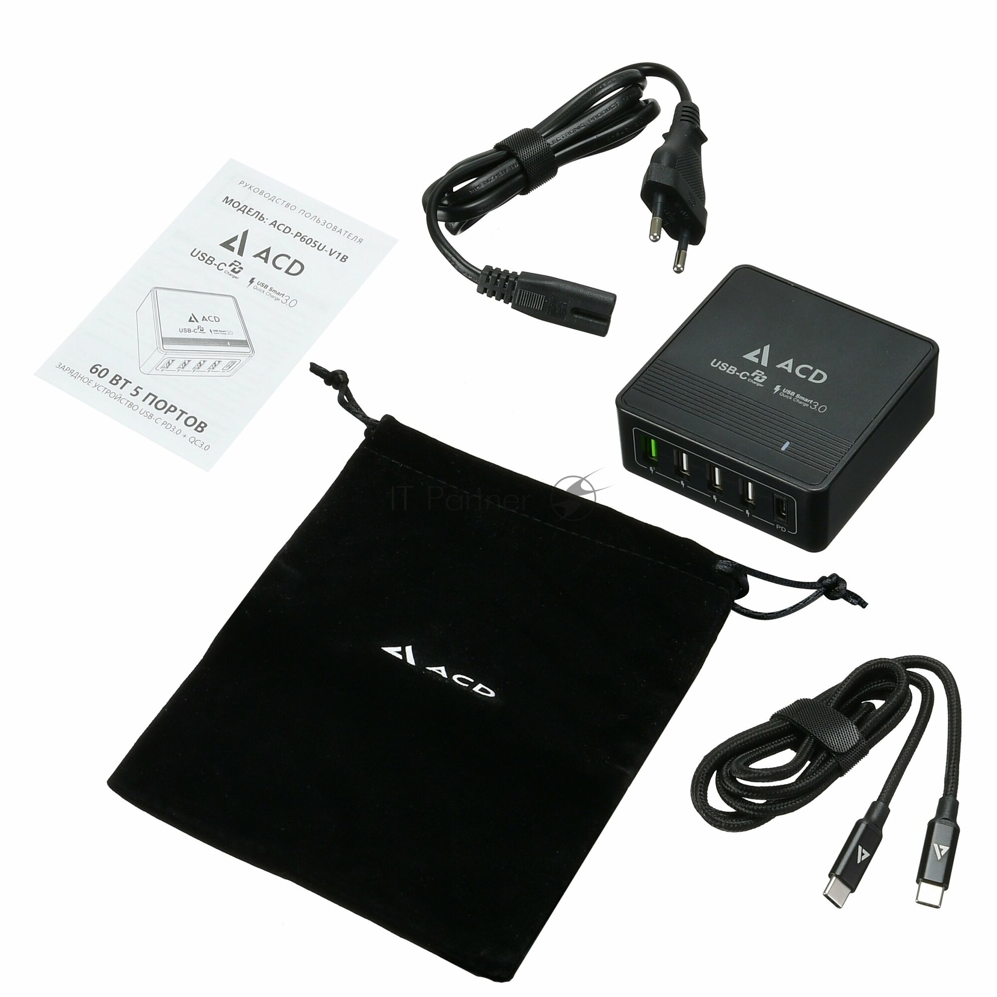 Сетевое зарядное устройство ACD ACD-P605U-V1B USB-C 3/2/1.5 А черный