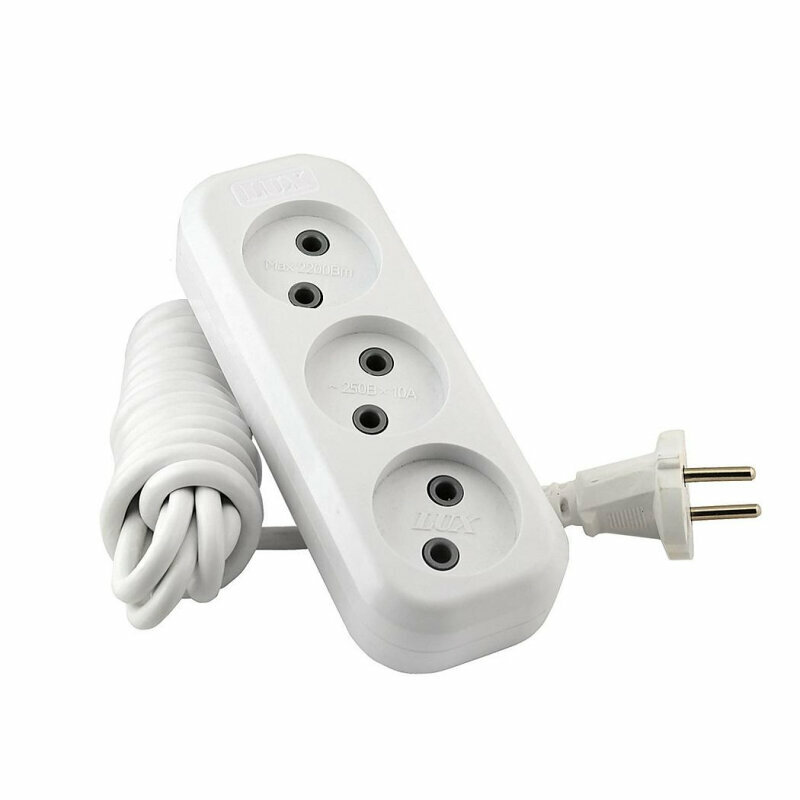 Удлинитель LUX У3-О, 3 розетки, б/з, 10А / 2200 Вт 3 м