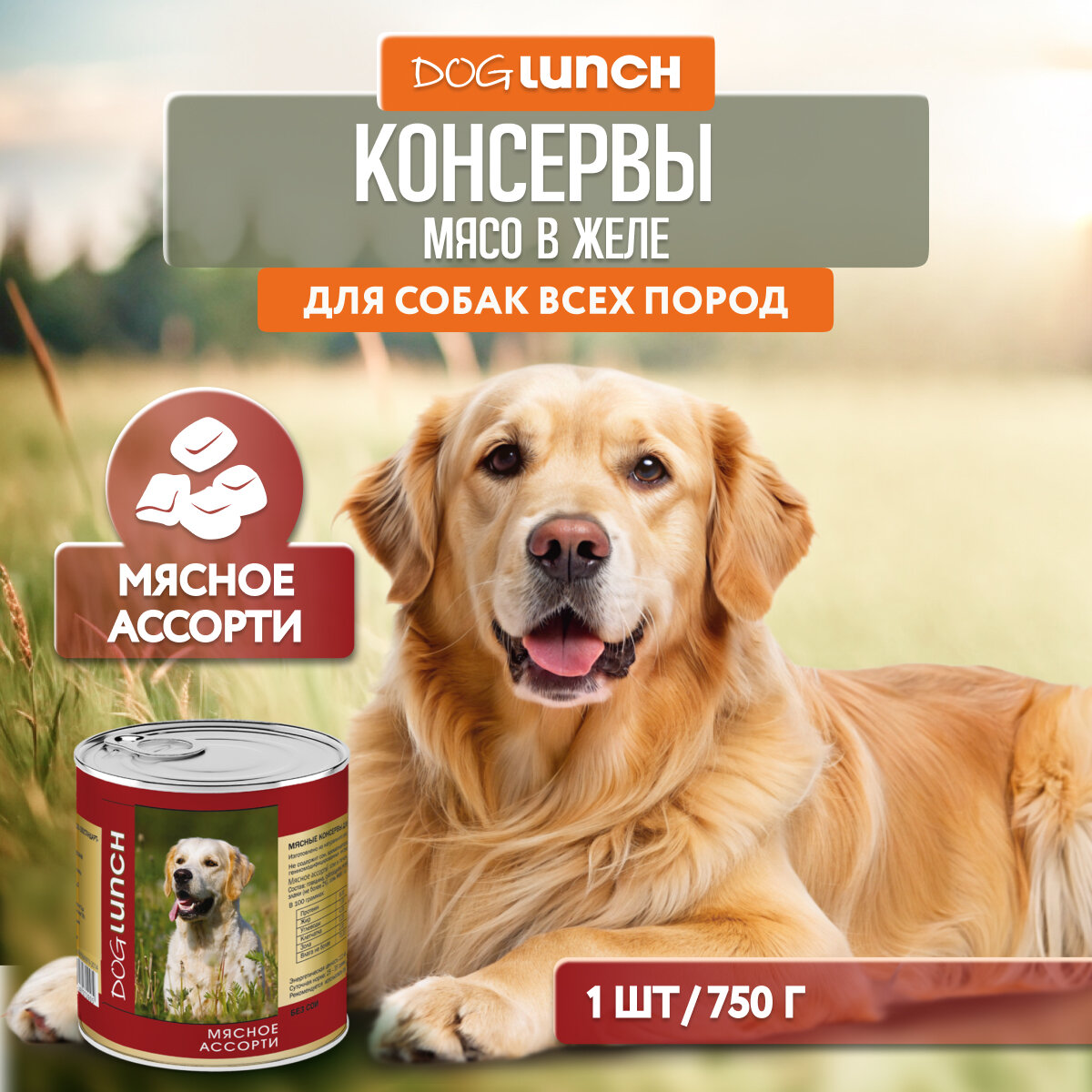 Консервы DOG LUNCH для собак мясное ассорти в желе 750г (Упаковка 12шт)