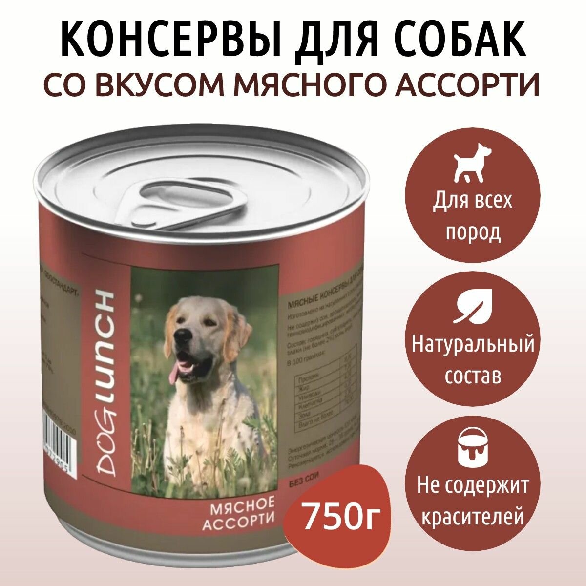 Консервы Dog Lunch для собак мясное ассорти 750г 88073