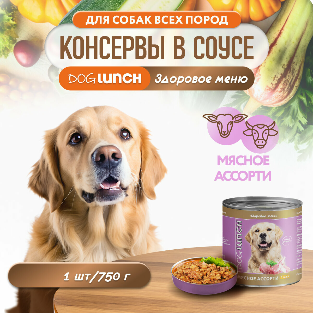 Купить Дог Ланч консервы для собак Мясное ассорти в желе 750г