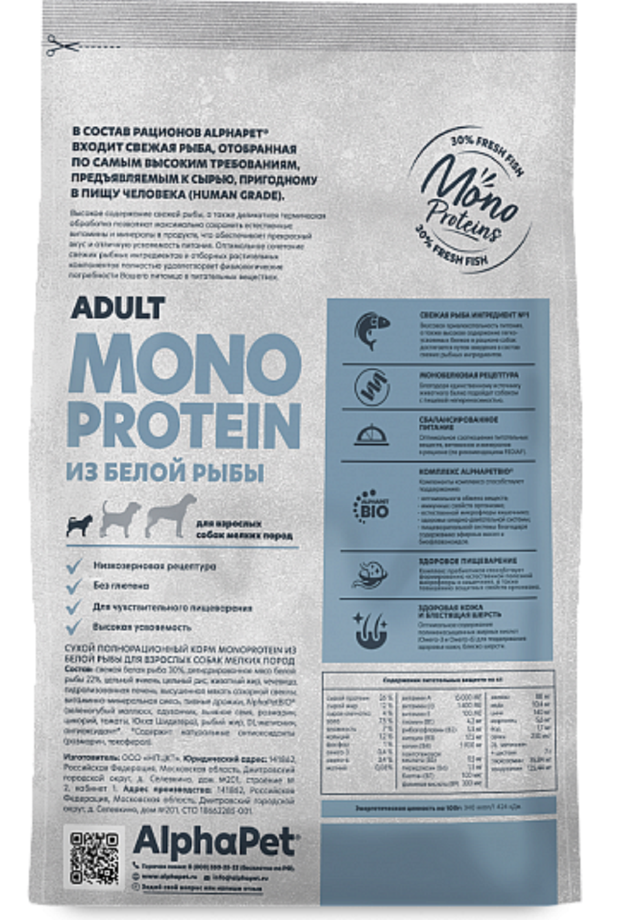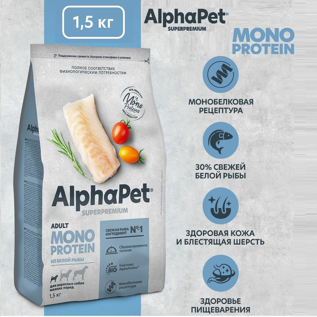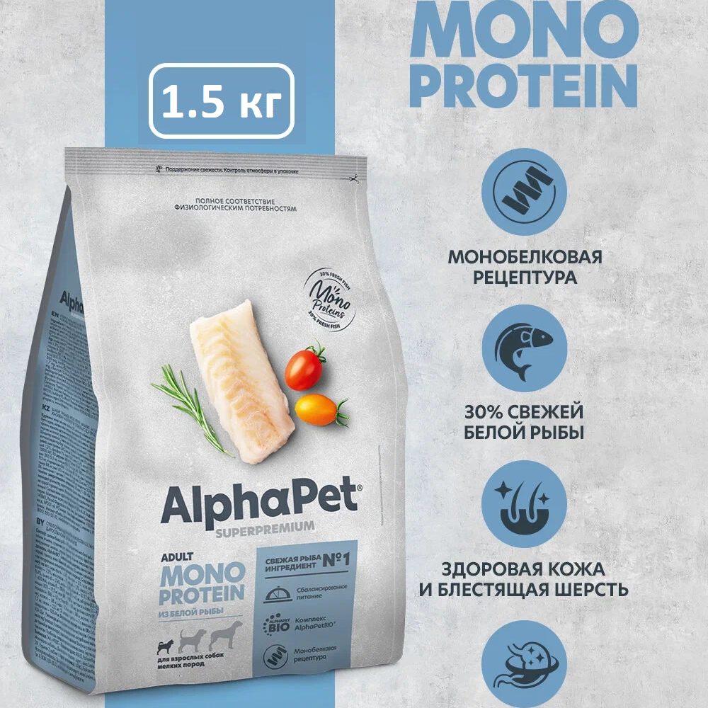 Купить Альфа Пет 52871/121354 Monoprotein сух.д/взрослых собак мелких пород из Белой рыбы 1,5кг