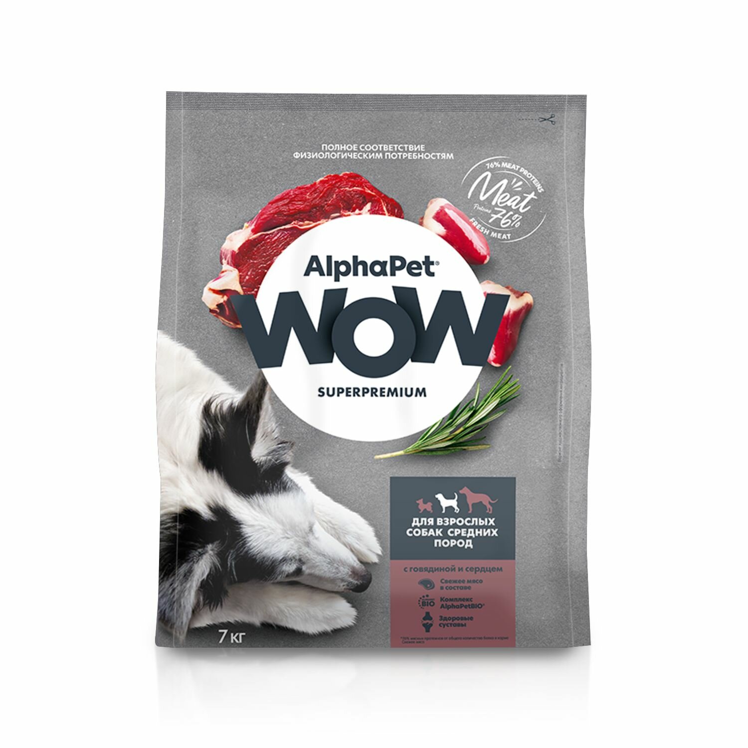 ALPHAPET WOW сухой для взрослых собак средних пород с Говядиной и сердцем 7кг