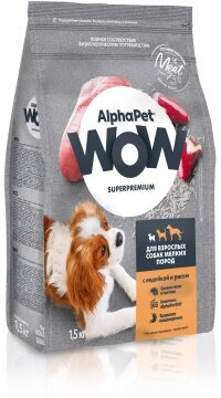 Сухой корм AlphaPet WOW Superpremium для собак мелких пород, с индейкой и рисом, 1,5 кг