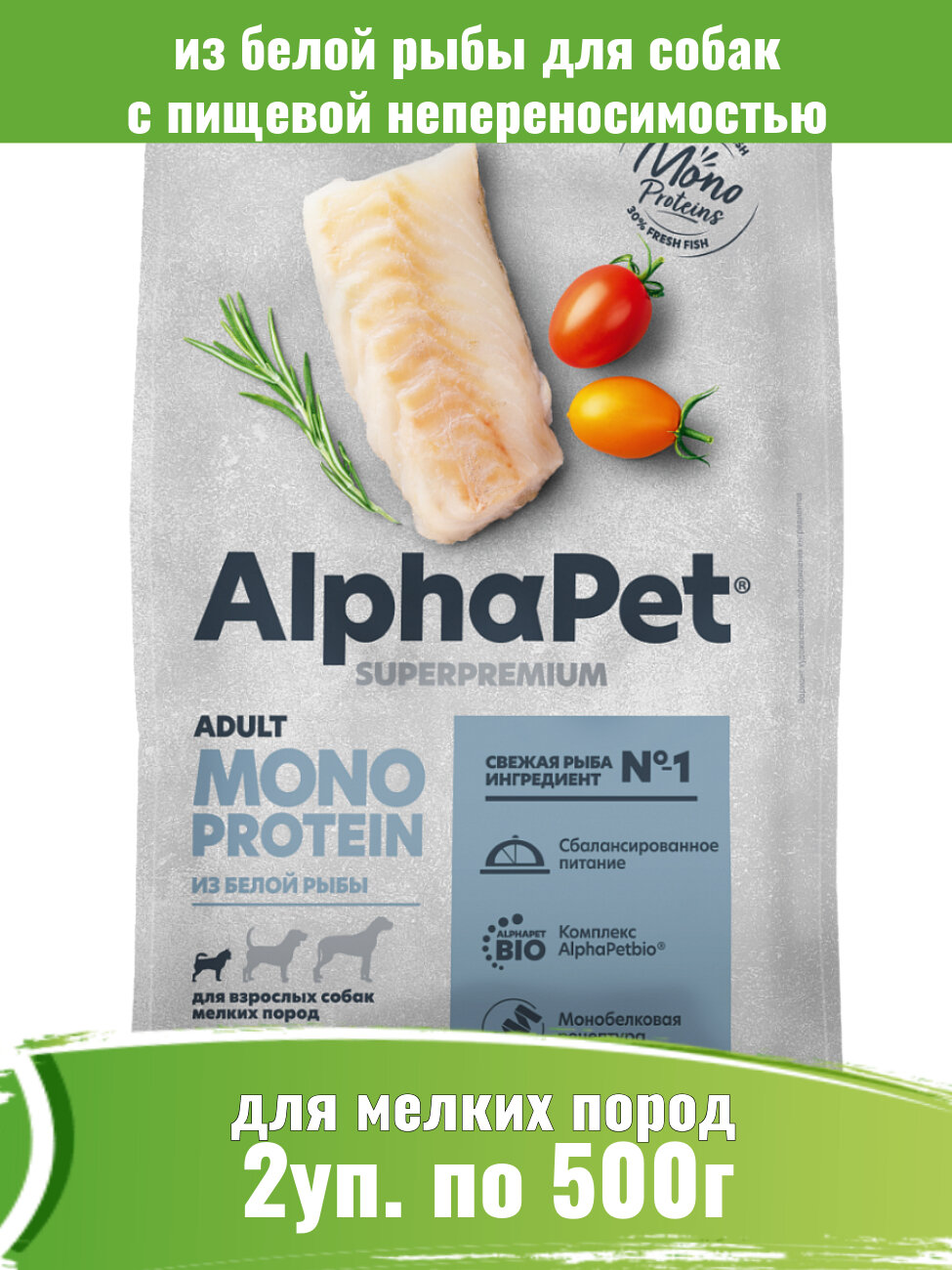 AlphaPet Superpremium Monoprotein 2шт по 500г корм из белой рыбы для собак мелких пород