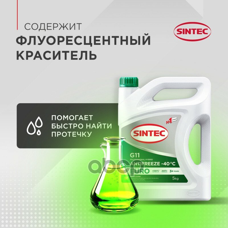 Sintec ANTIFREEZE SINTEC EURO G11 -40, силикатный антифриз 20кг для двигателя автомобиля, охлаждающая жидкость в авто, зелёный, готовый к применению