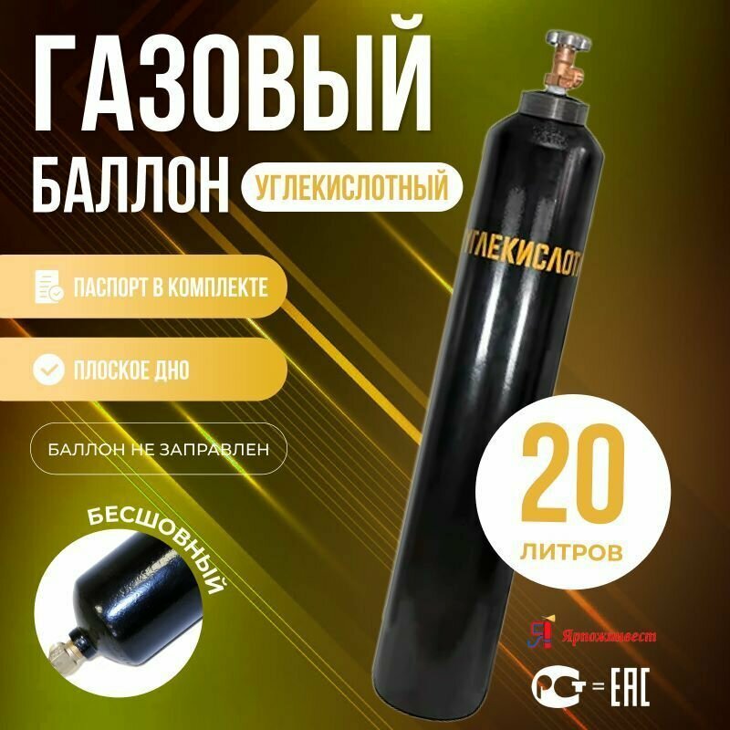 Баллон газовый для углекислоты 20л Ярпожинвест, бесшовный/ Пустой без газа