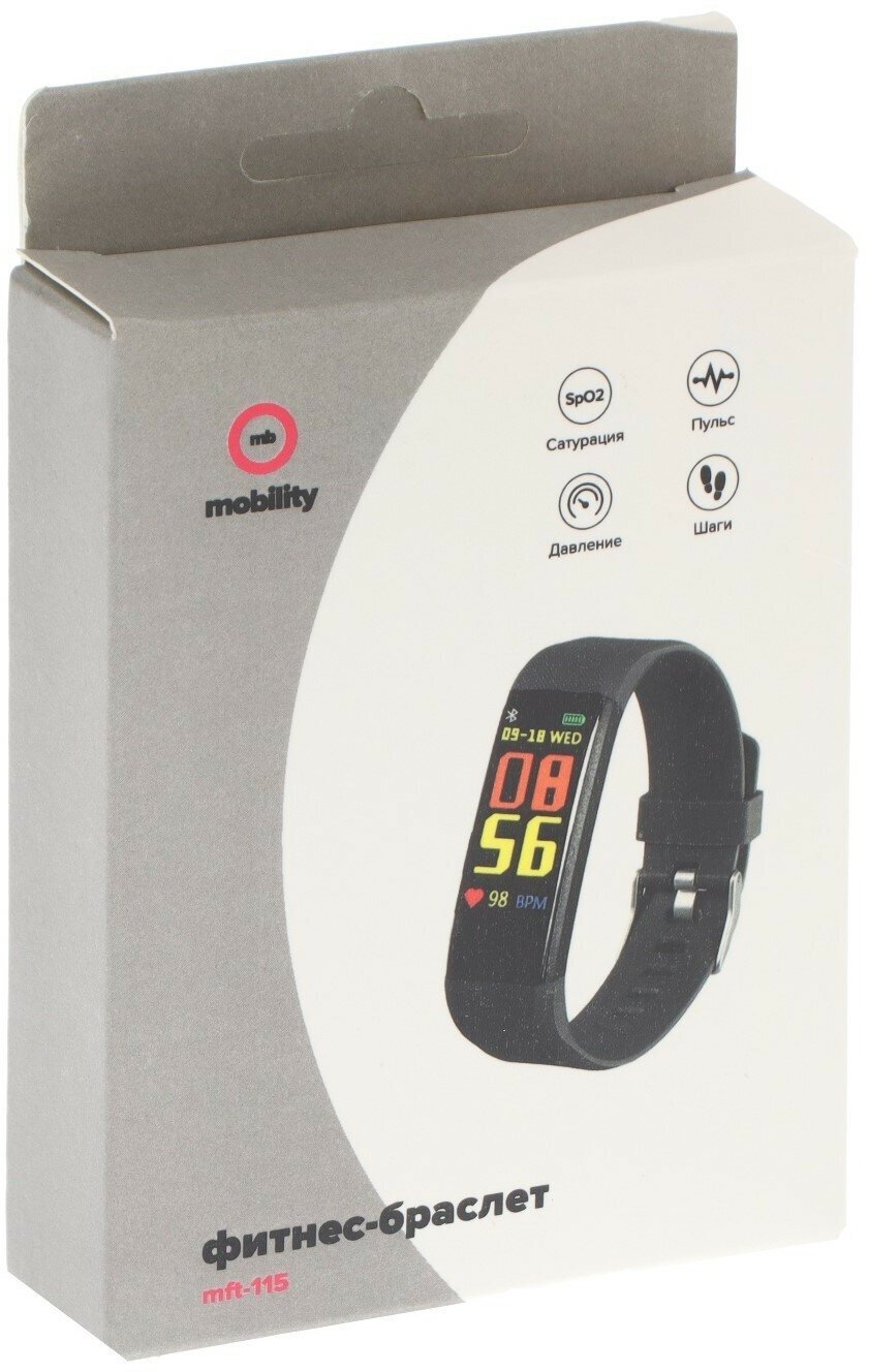 Фитнес-браслет MB Mobility mft-115, цветной дисплей, пульсометр, оповещения, шагомер, черный