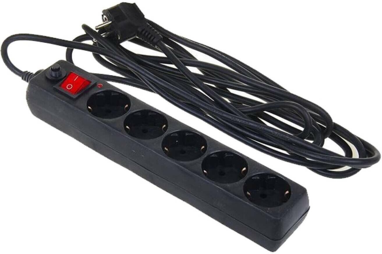 Сетевой фильтр СФ-05В выключатель, 5 гнезд, 5 метров, с заземлением, ПВС 3х1мм2 16А/250В черный TDM 1 шт {SQ1304-0003}