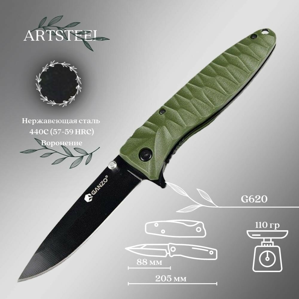 Складной нож GANZO G620g-1, 205мм, темно-зеленый / черный, коробка картонная