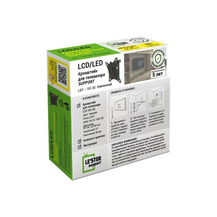 Купить Кронштейн LE'STER LST-101.02, для ТВ, наклонный, 10"-32", 50 мм от стены, черный