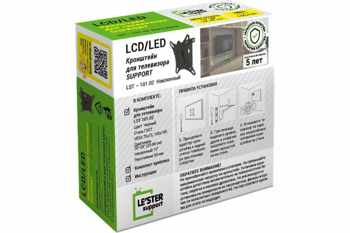 Ниже Вы можете прочитать отзывы на Кронштейн LE'STER LST-101.02, для ТВ, наклонный, 10"-32", 50 мм от стены, черный, ознакомится с подробными характеристиками, посмотреть интересные обзоры и фотографии на Кронштейн LE'STER LST-101.02, для ТВ, наклонный, 10"-32", 50 мм от стены, черный.
