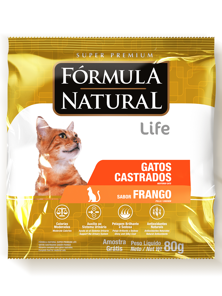 Купить Сухой корм для стерилизованных или кастрированных кошек и котов, Formula Natural Life Super Premium - низкозерновой, с курицей, Бразилия, 80 гр