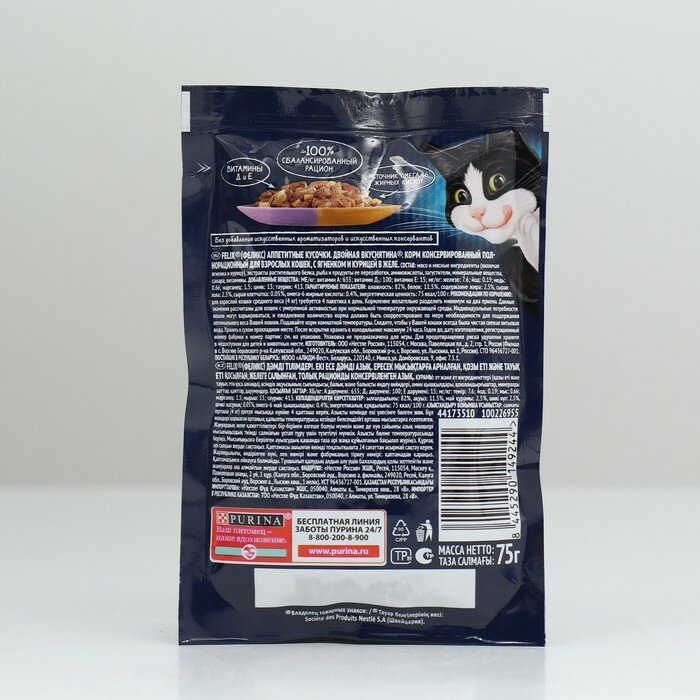 Felix "Аппетитные кусочки" Двойная вкуснятина влажный корм для взрослых кошек с ягненком и курицей в желе, в паучах - 75 г х 26 шт