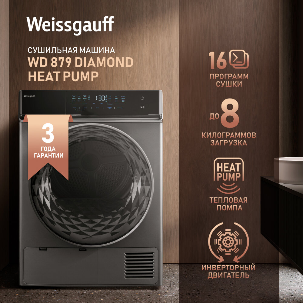 Сушильная машина с инвертором Weissgauff WD 879 Diamond Heat Pump