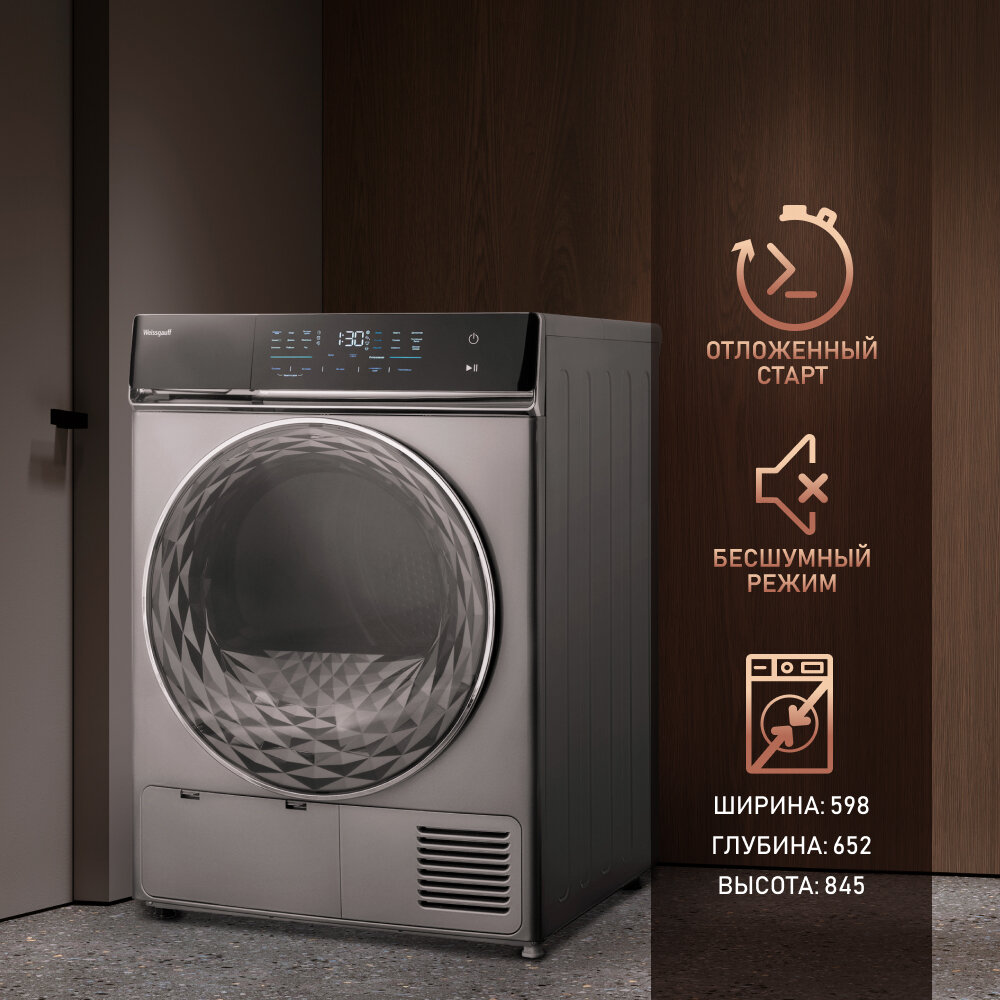 Сушильная машина Weissgauff WD 879 Diamond Heat Pump, серебристый металлик